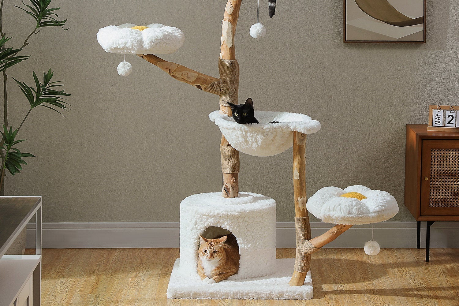 Arbre à chat blanc : structure claire pour intérieur lumineux