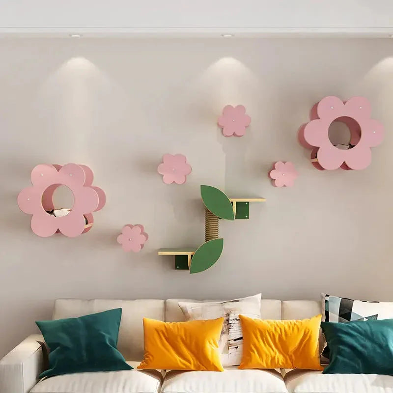 Un arbre à chat mural est un système d'étagères, de passerelles et de perchoirs fixés directement au mur. Contrairement aux arbres à chat classiques, il ne prend pas de place au sol et exploite la hauteur de la pièce.
