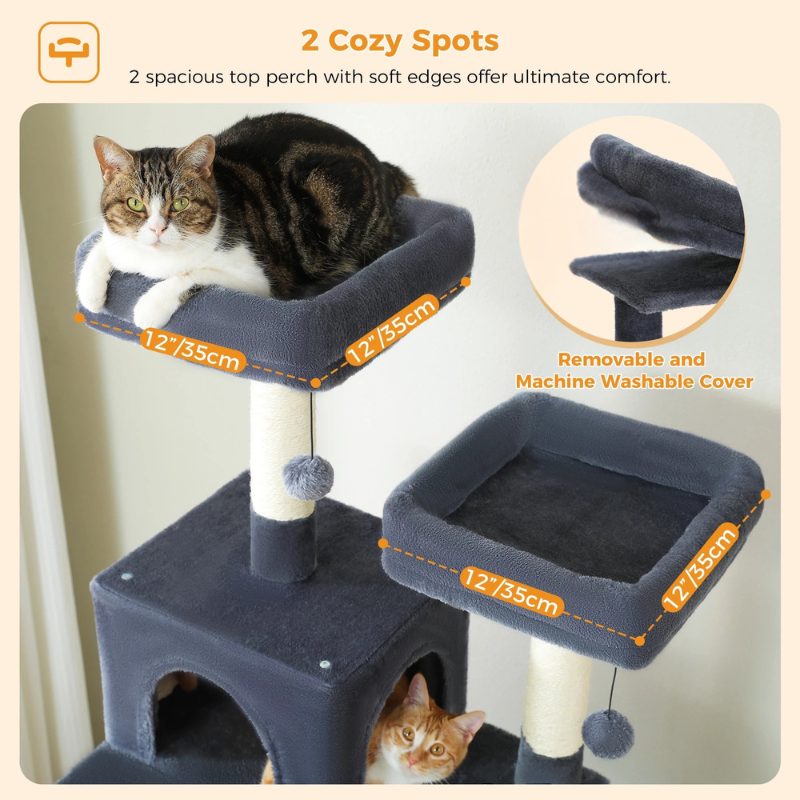 Perchoirs supérieurs : 2 plateformes rembourrées avec rebords